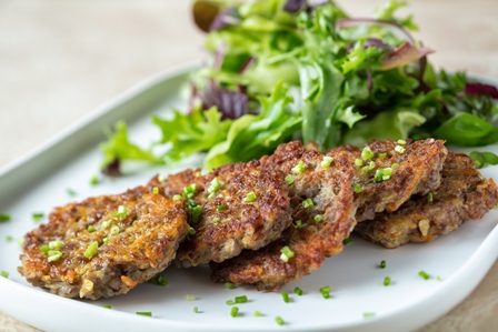 Aktuálním oblíbeným jídlem jsou u nás ovesné placičky z vloček, strouhané zeleniny, zelených bylin a sýra, které spojíme vajíčkem, zahustíme luštěninovou moukou a smažíme. Vaříme často kroupy ala halušky s brynzou a kysaným zelím nebo s pestem. Máme rádi tzv. uhlířinu – nočky z žitné mouky s brambory, kyselým zelím a tempehem.