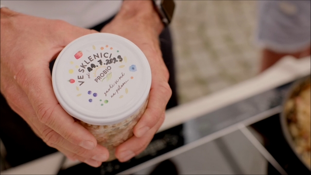 Vlastně si počínáme stejně, jako u zavařování džemů a marmelád a vytváříme ve sklenici „vakuum“. Potraviny rozdělujeme do sklenic tak, aby se obsah po otevření spotřeboval naráz. Víčko opatříme datumem lihovým smazatelným fixem. Po spotřebování obsahu popisek jednoduše odstraníme, nádoby umyjeme a znovu využijeme.