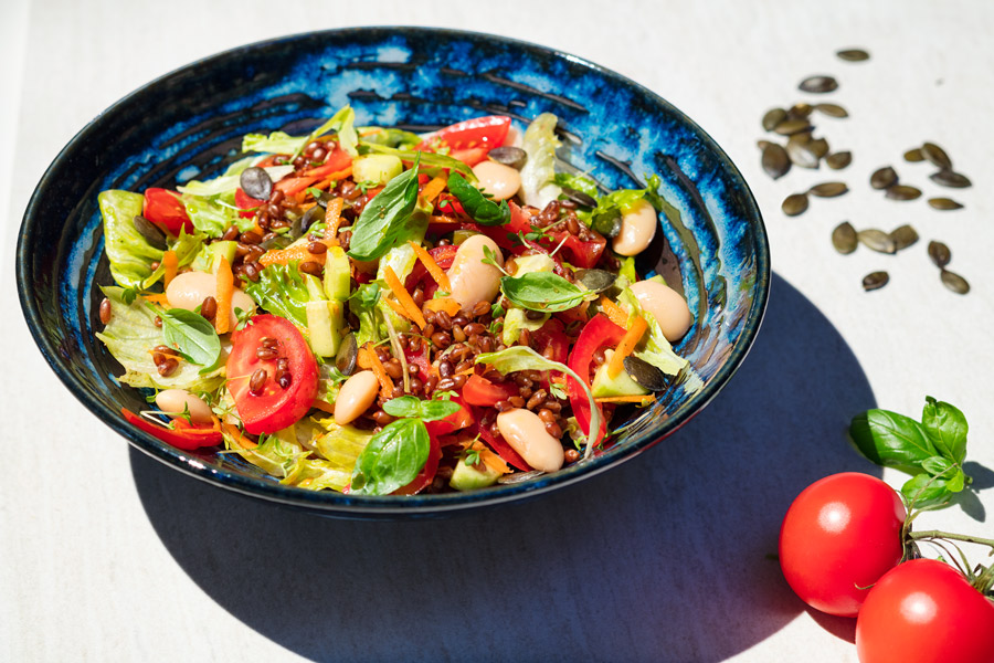 - Luštěniny v salátu jsou chuťově vynikající kombinace. Využijte čočku, cizrnu, mungo, adzuki a nebo fazole. Vysoký obsah bílkovin v luštěninách pozvedne nutriční hodnotu salátu a získáte plnohodnotný pokrm.