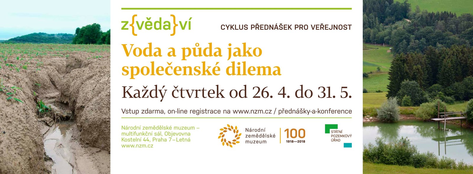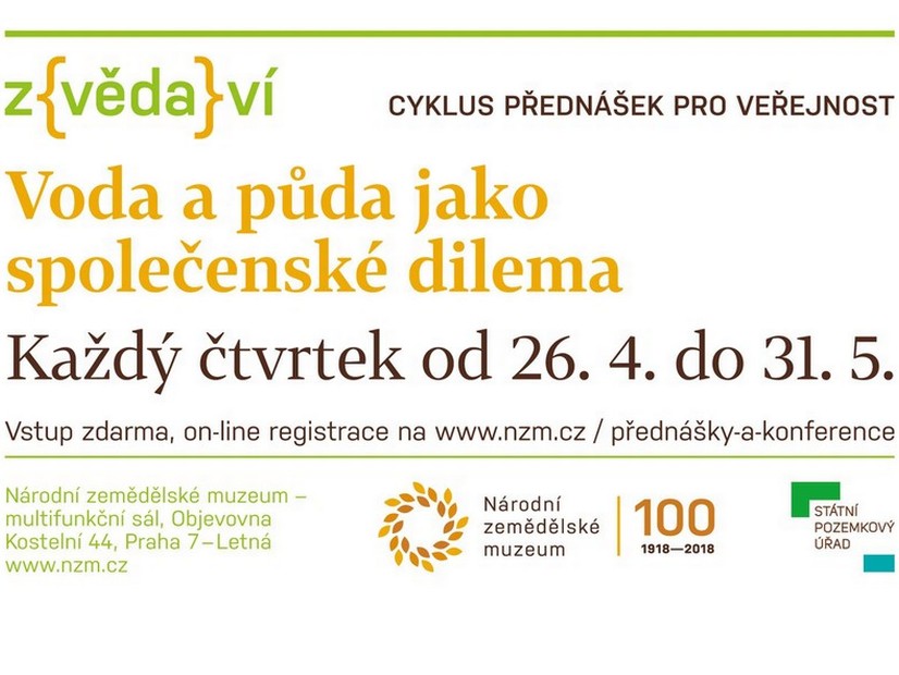 Šest podvečerních přednáškových bloků nazvaných Voda a půda jako společenské dilema začíná v Národním zemědělském muzeu v Praze ve čtvrtek 26. dubna.