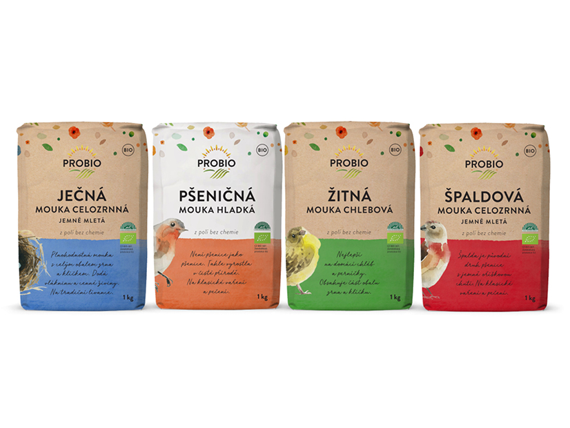 Základním spojujícím prvkem nové řady bio mouk jsou obrázky různých druhů polních ptáků. „Motiv ptáčka jsme zvolili cíleně. Pták jako symbol propojuje čistou zdravou krajinu a biopotraviny, které z ní pocházejí,“ objasňuje Barbora Hernychová z marketingu PROBIO. „Obilí na mouky je pěstováno v režimu ekologického zemědělství, bez chemických postřiků a umělých hnojiv. Novým vzhledem prezentujeme ekologické zemědělství a biopotraviny jako možné řešení na současné ekologické i zdravotní problémy, doplňuje.