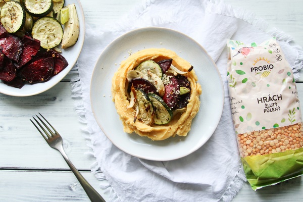 KAŠE Z HRACHU ŽLUTÉHO I ZELENÉHO SE ZELENINOU