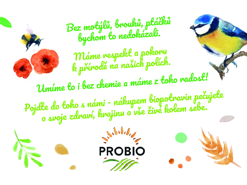 Společnost PROBIO je prvním českým výrobcem biopotravin. Hospodaří na dvou vlastních ekologických farmách, provozuje tři bio mlýny a v nabídce má v současné době přes 1 500 produktů v kvalitě bio.
