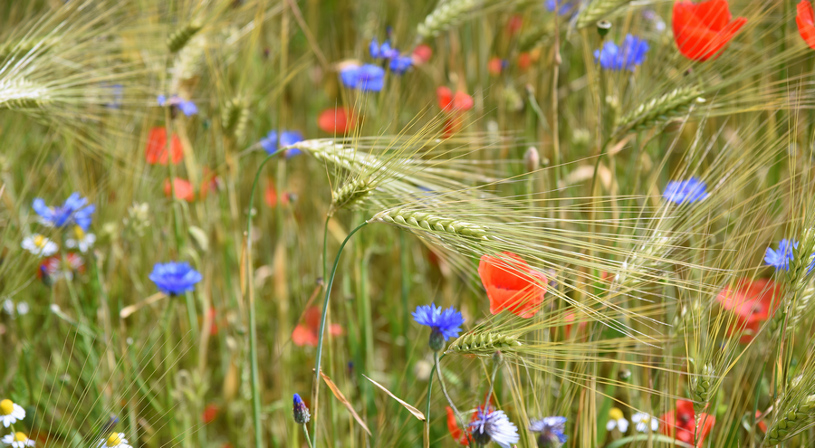 Proč jsme pro vás namíchali právě takovouto směs? Pohled na rozmanitý záhon s vousatým obilím i plnými klasy s červeným mákem a modrou chrpou je fajn.