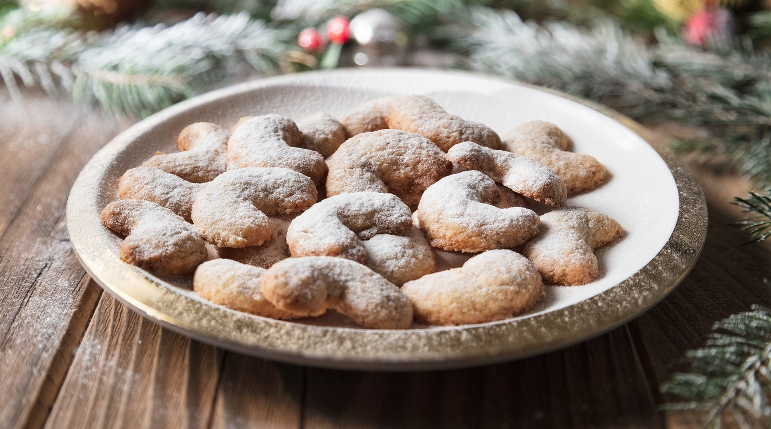 Těsto znovu propracujte, vytvořte váleček o průměru cca 1,5 cm a nakrájejte na stejně velké cca 1 cm široké kousky. Z těchto kousků vyválejte rohlíčky, ty položte na plech vyložený pečicím papírem a pečte na 160 °C 8-10 minut na horkovzduch. Ještě teplé rohlíčky obalte v moučkovém cukru.