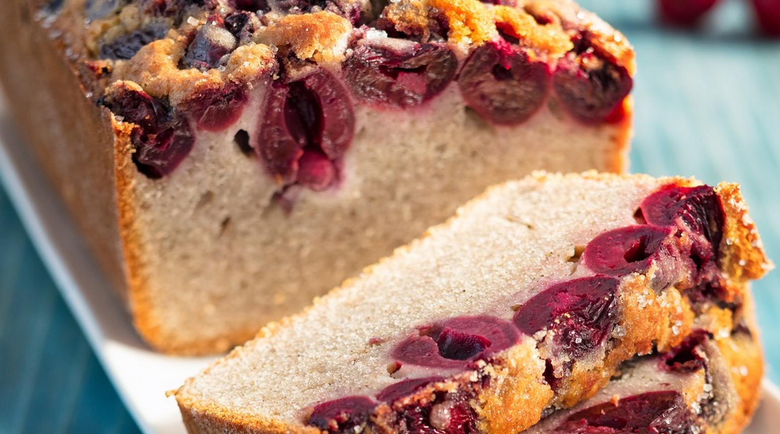 Těsto vlijte do chlebové formy nebo jeleního hřbetu a posypte višněmi naloženými v rumu.