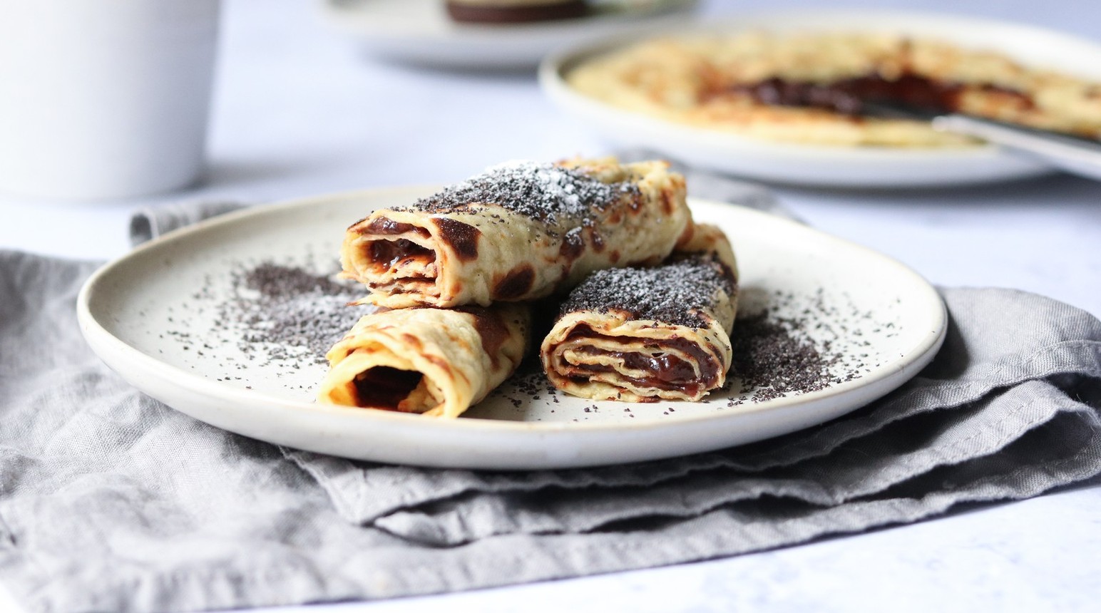 Placky potírejte povidly, srolujte a na talíři posypejte mákem a cukrem.