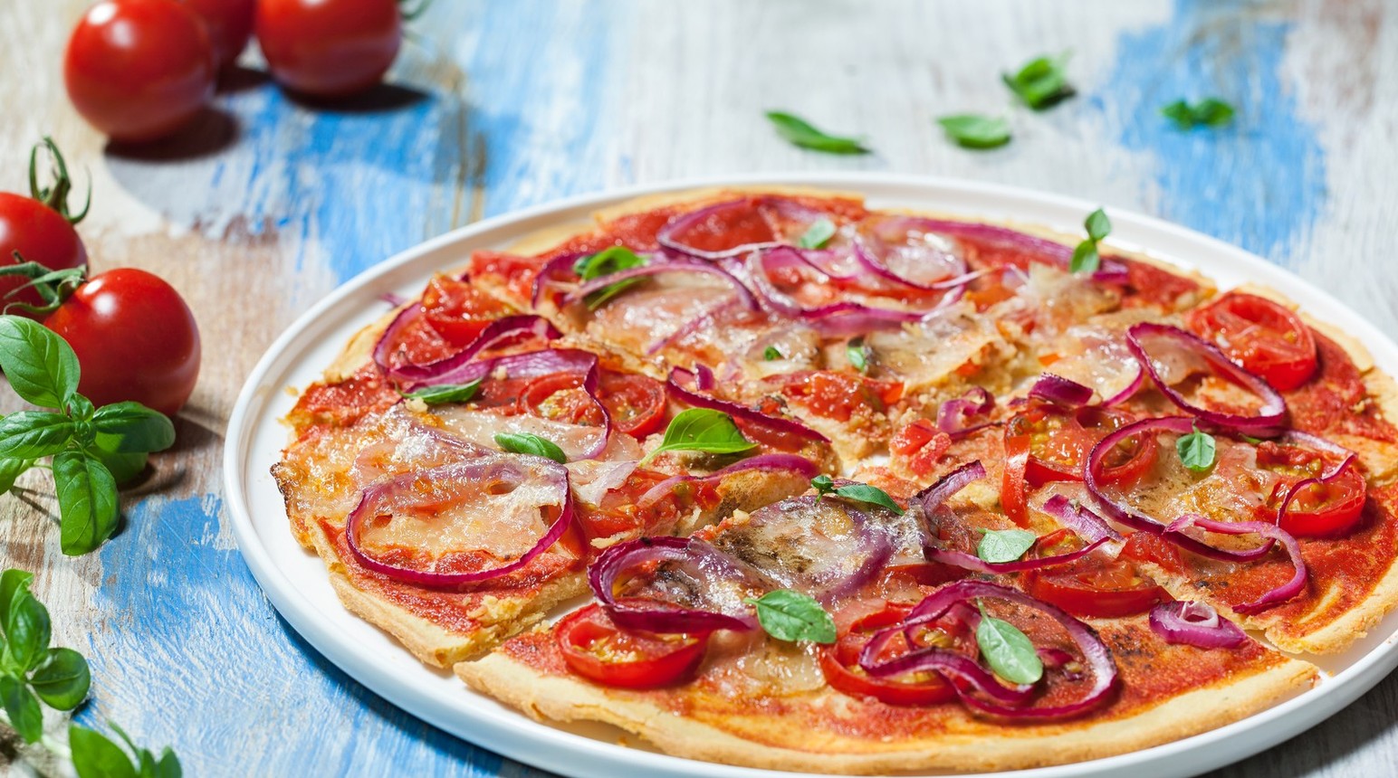 Cizrnovou mouku prosejte, přidejte sůl, rozmarýn, olivový olej a postupně přilévejte vodu. Vypracujte v hladké husté těsto, to nechte při pokojové teplotě odpočinout 20-30 minut. Těsto vložte do kulaté formy vymazané olivovým olejem a lehce navlhčenými dlaněmi jej rozprostřete až nad okraj. Korpus pečte na 200 °C, dokud okraje nezezlátnou. Upečený korpus nechte chvíli zchladnout. Na korpus přidejte passatu, zeleninu, sýr a opepřete. Pizzu dopékejte cca 20 minut.