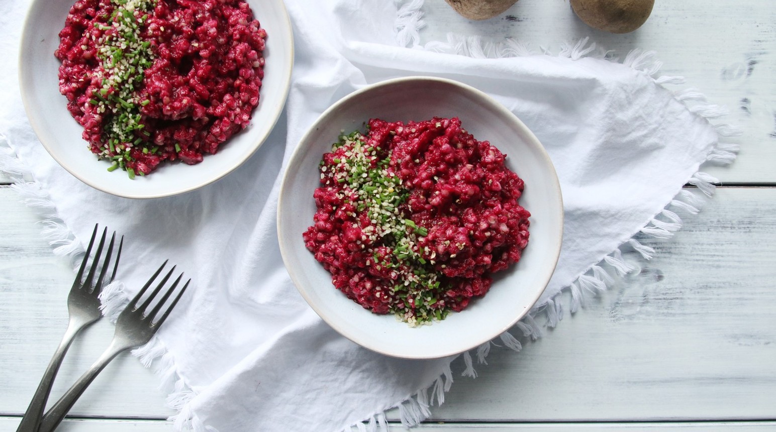 Červenou řepu omyjte, osušte papírovou utěrkou a několikrát obalte v alobalu. Přendejte na plech a vložte do trouby předehřáté na 200 °C. Pečte asi 45 – 50 minut, dokud řepa nezměkne. Chcete-li ušetřit čas, použijte předvařenou řepu. Pohanku uvařte v osolené vodě doměkka. Řepu nechte zchladnout. Poté ji oloupejte. Nakrájejte řepu na menší kusy a vložte do mixéru. Přidejte špetku soli, kokosovou smetanu, římský kmín a rozmixujte. Promíchejte pohanku s rozmixovanou řepou a servírujte. Na talíři posypete semínky a najemno nakrájenými bylinkami.