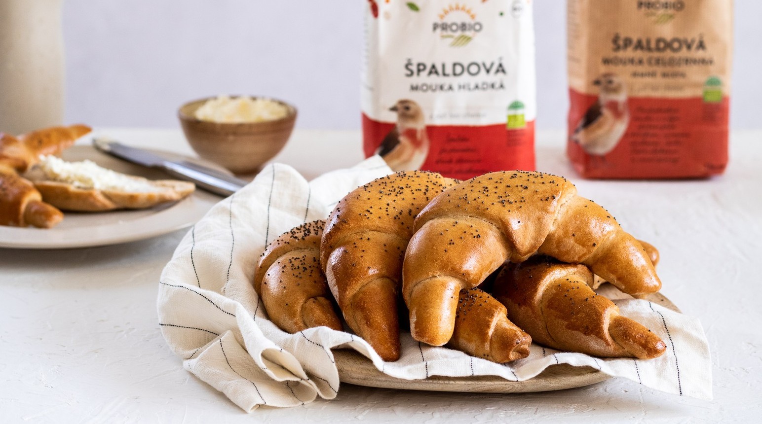 Z každého bochánku vyválejte na pomoučeném vále trojúhelník a stočte od širšího kraje ke špičce. Přendejte na plech vyložený pečicím papírem a nechte 20 minut kynout.