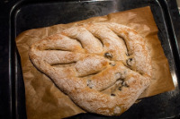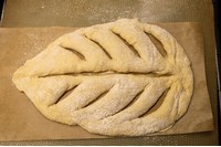 Mezitím zahřejte troubu na 230°C. Fougasse pečte přibližně 10-15 minut, až bude na povrchu zlatý a křupavý. Nejlepší je čerstvý.