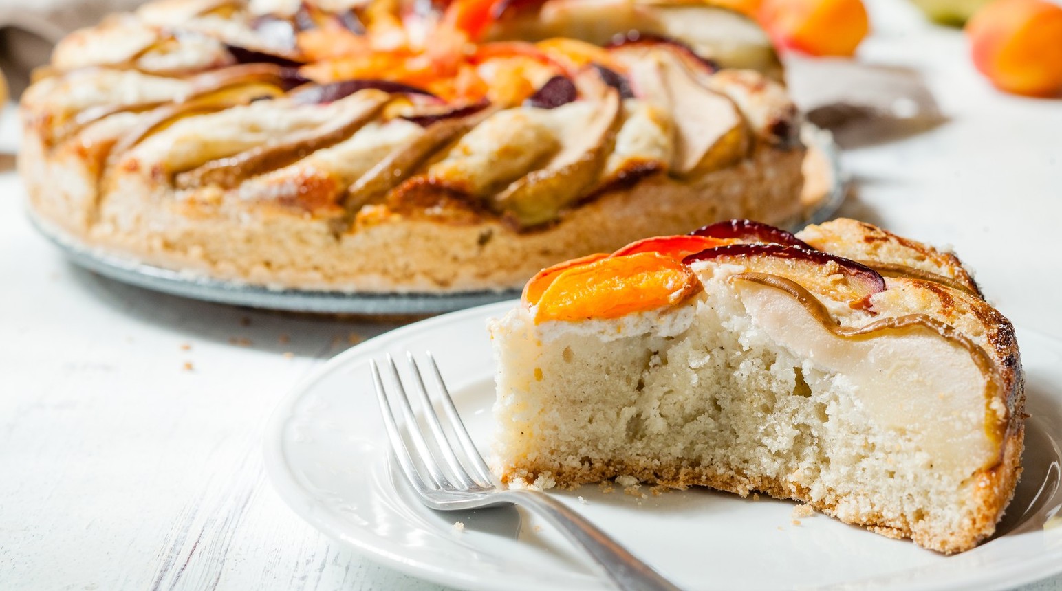 Tvarohovou náplní přelijte těsto a posypte ovocem. Pečte na 200 °C cca 30 minut.