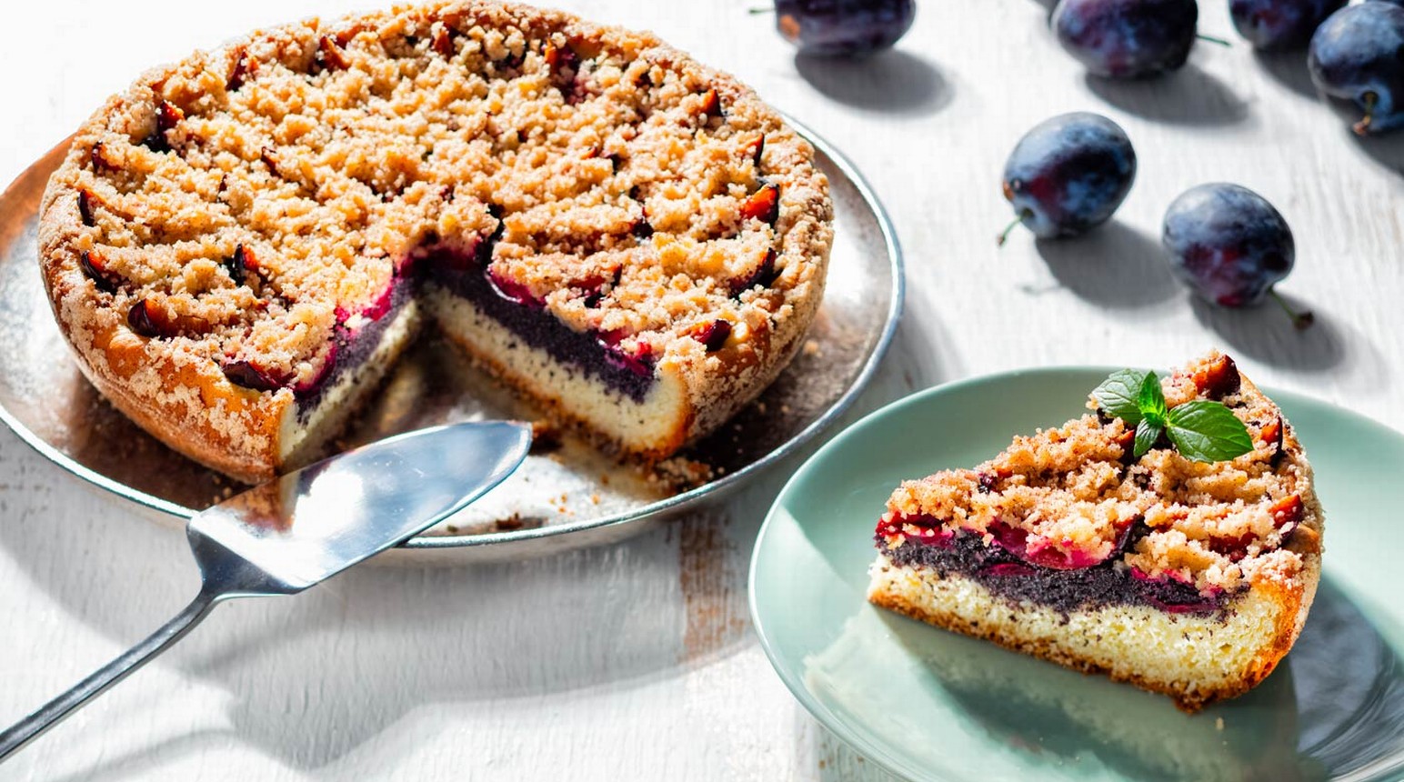 Z mléka, másla, cukru a droždí připravte kvásek. Mouku smíchejte s vejcem a kváskem a zadělejte těsto. Nechte kynout na teplém místě cca 30 minut. Mák svařte s cukrem a mlékem. Z mouky, cukru a skořice vypracujete drobenku. Švestky očistěte a rozpulte.