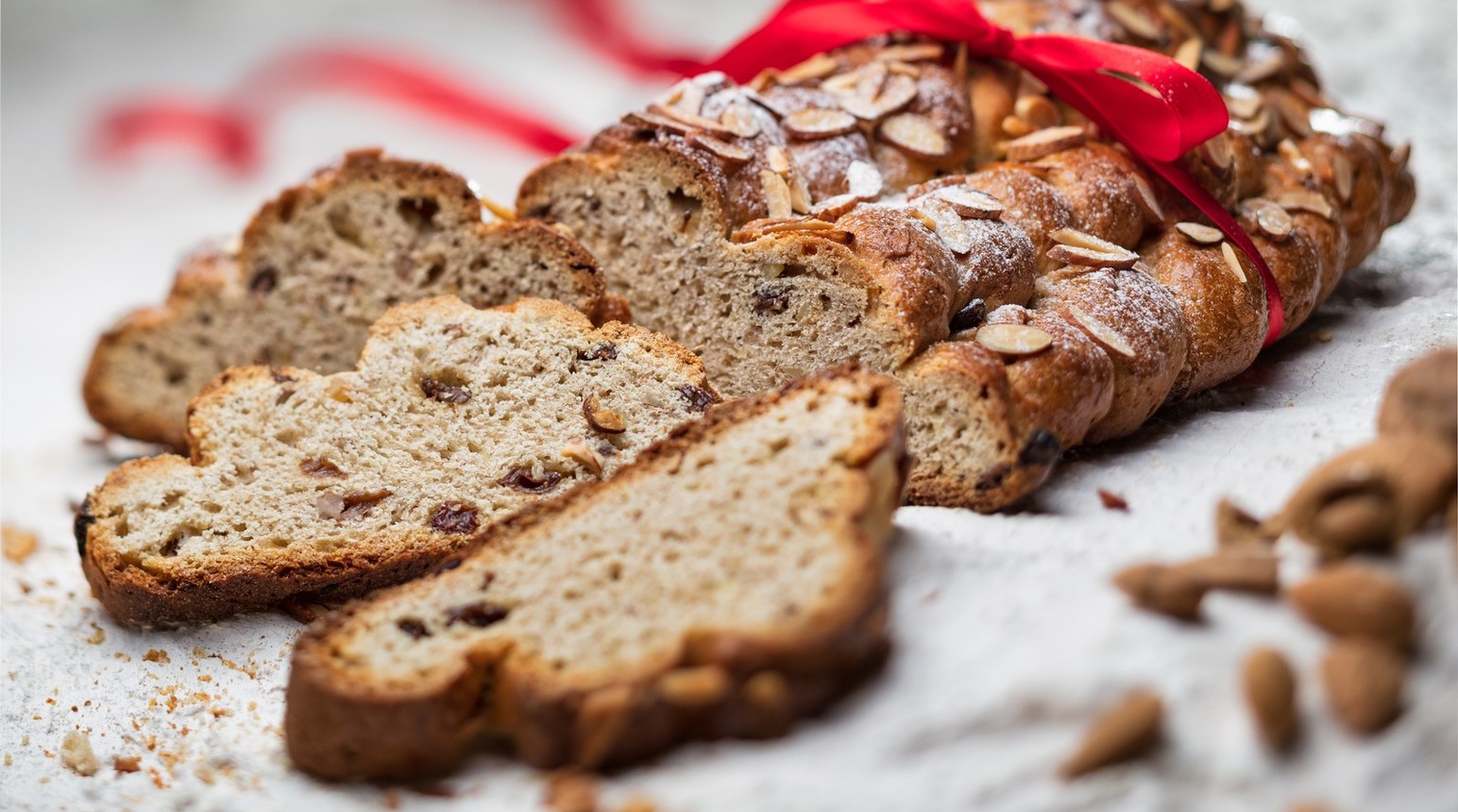 Zbytek mouky smíchejte s cukrem, přidejte rozšlehané žloutky se špetkou soli, špetku nastrouhaného muškátového oříšku, citronovou kůru, kvásek a rozpuštěné máslo. Vypracujte tuhé těsto. Při hnětení těsta dle potřeby přidejte mléko či obilný nápoj. Těsto přikryjte a nechte alespoň 2 hodiny kynout.