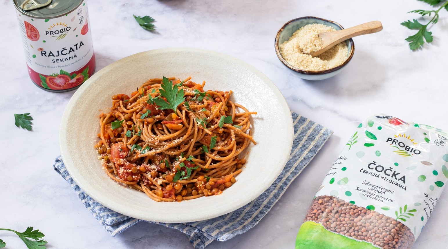Boloňskou omáčku podávejte s těstovinami. Posypejte veganským parmezánem a nakrájenou petrželkou.